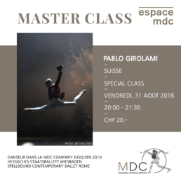 PABLO GIROLAMI Masterclass – Special class Vendredi 31 août 2018 20h00 – 21h30 Inscriptions et infos : info@academiemdc.ch PrécédentAll NewsSuivant
